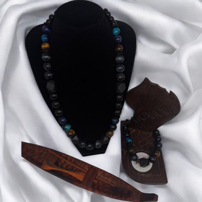 Be the first to review “Collier pierre semi-presieuse CHRISTIAN bleu noir et marron”